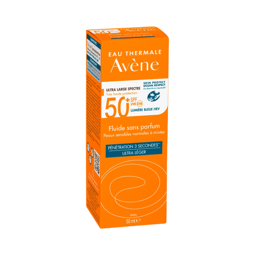 AVÈNE Solar Fluido SPF 50+ es un fotoprotector facial de muy alta protección UVA/UVB, formulado para pieles sensibles. Gracias a su textura fluida y de rápida absorción, ofrece una protección eficaz sin dejar residuos blancos ni sensación grasa. Contiene Pre-tocoferil, un potente antioxidante que ayuda a neutralizar los radicales libres, y Agua Termal de Avène, que calma y suaviza la piel. Es no comedogénico, resistente al agua y apto para uso diario, incluso bajo maquillaje.